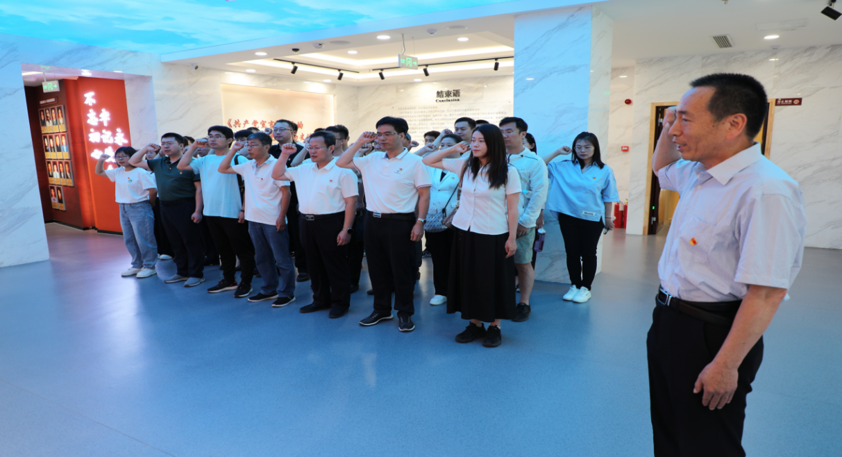 7月7日上午,全体党员前往东营市广饶县大王镇,参观《共产党宣言》纪念馆,详细了解了《共产党宣言》诞生的国际背景和首版中译本问世、传播、指导中国革命的历程,并在党旗下重温入党誓词,赓续红色信仰。