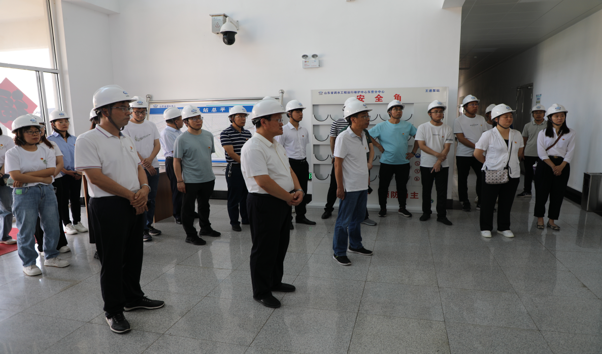随后,大家来到由山东水设参建的王道泵站,开展现场业务工作调研。王道泵站作为小清河防洪综合治理胶东调水工程的重要组成部分,是胶东调水输水干线关键控制性工程,也是承担调引长江水、黄河水任务的第一级泵站。在泵站现场,大家听取了泵站管理人员对工程建设情况介绍,观摩了泵站工程建设运行情况以及安全监测设施布置情况。