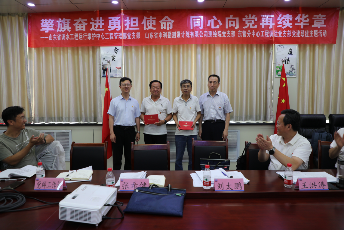 山东省调水工程运行维护中心工程管理部部长刘太鹏、副部长张希健,东营分中心党委委员、副主任郝海涛、测绘院党支部书记刘文国以及三个联建共建支部的40余名同志参加了活动。