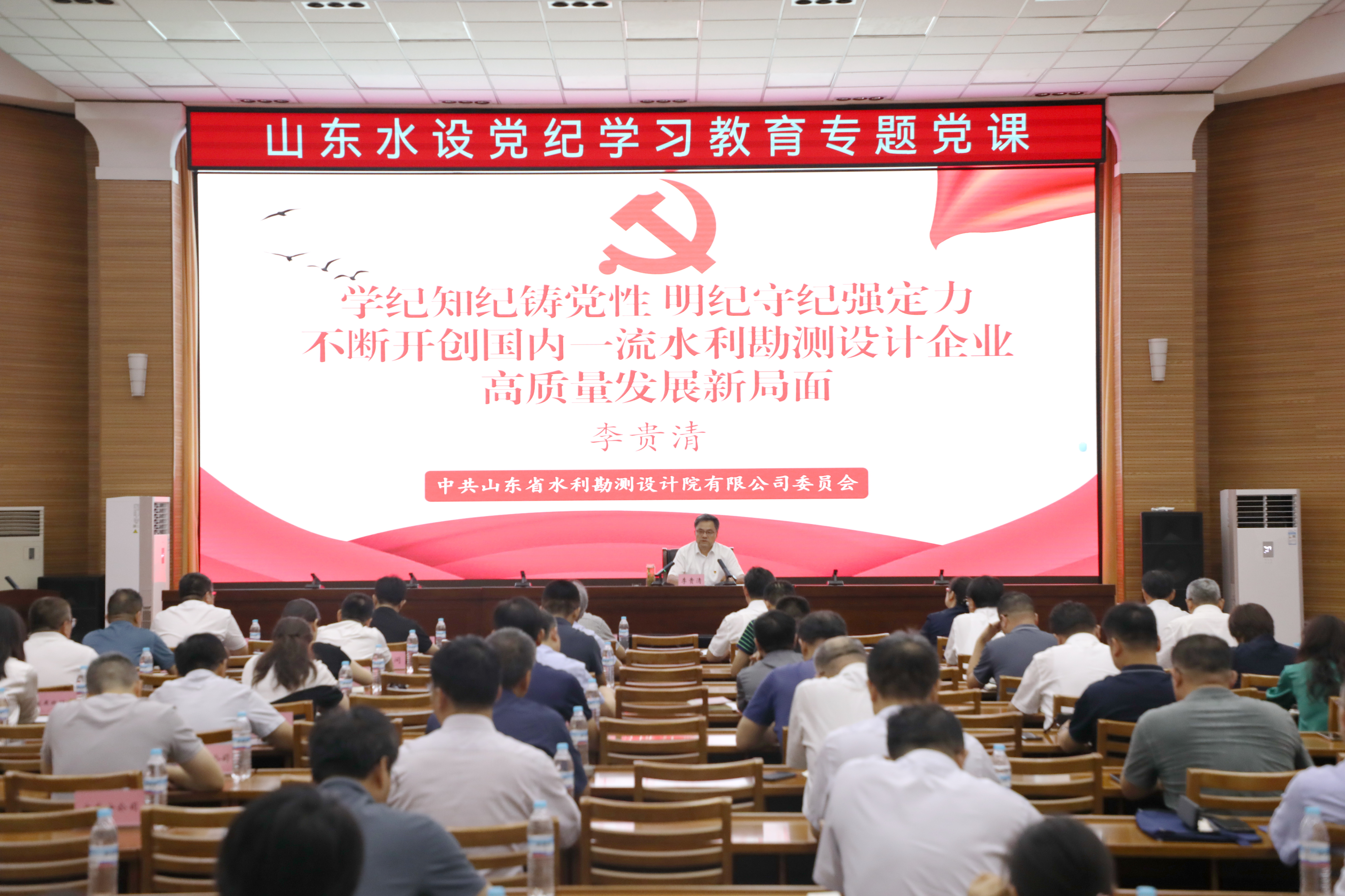 在中国共产党成立103周年之际,为深入推进党纪学习教育走深走实,认真学习贯彻习近平总书记关于全面加强党的纪律建设的重要论述及视察山东重要讲话精神,7月1日,2024幸运168飞行艇开奖历史记录党委副书记、董事、总经理李贵清(主持公司全面工作)以“学纪知纪铸党性、明纪守纪强定力 不断开创国内一流水利勘测设计企业高质量发展新局面”为题,为全体党员讲授专题党课。
