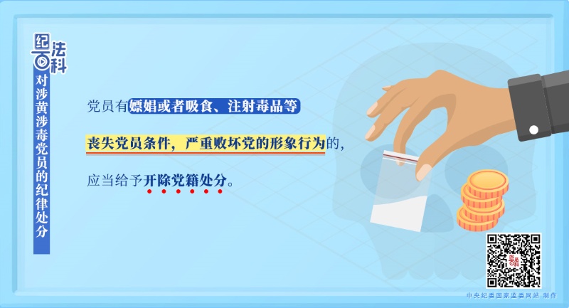 《中国共产党纪律处分条例》第三十条第三款规定,党员有嫖娼或者吸食、注射毒品等丧失党员条件,严重败坏党的形象行为的,应当给予开除党籍处分。