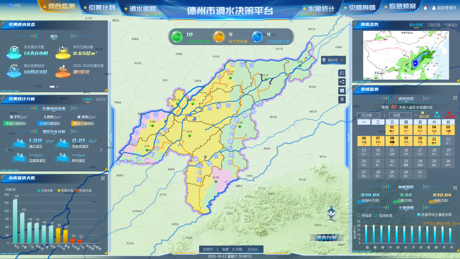 针对平原地区水利治理难题,“鲁西北典型平原区域数字孪生市级水网工程项目”以德州为试点,通过集成GIS+BIM及水文水动力耦合仿真等数字孪生技术,打造“天空地水工”一体化智慧平台。通过构建防汛与引调水联合调度系统,项目首次实现平原区域“防洪安全”与“供水保障”的协同优化,有效化解自然河道引调水与防洪的冲突矛盾,为华北平原市级水网全链条数字化管控提供了“山东样板”。