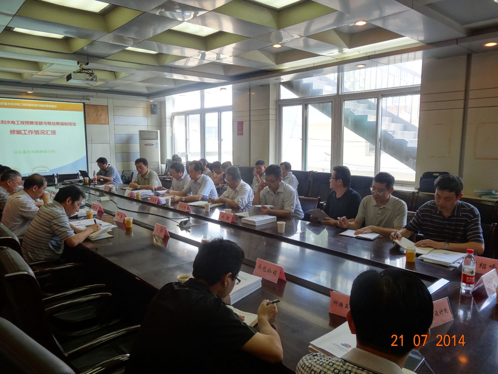 7月21日,山东省水利厅建设处组织专家在济南召开咨询会,对我院编制完成的《山东省水利水电工程设计概(估)算编制办法》、《 山东省水利水电建筑工程预算定额》、《 山东省水利水电设备安装工程预算定额》和《山东省水利水电工程机械台班费用定额》的修改稿进行了座谈咨询。此前,我院对上述编制办法和定额进行了内部审查并完成了修改稿。