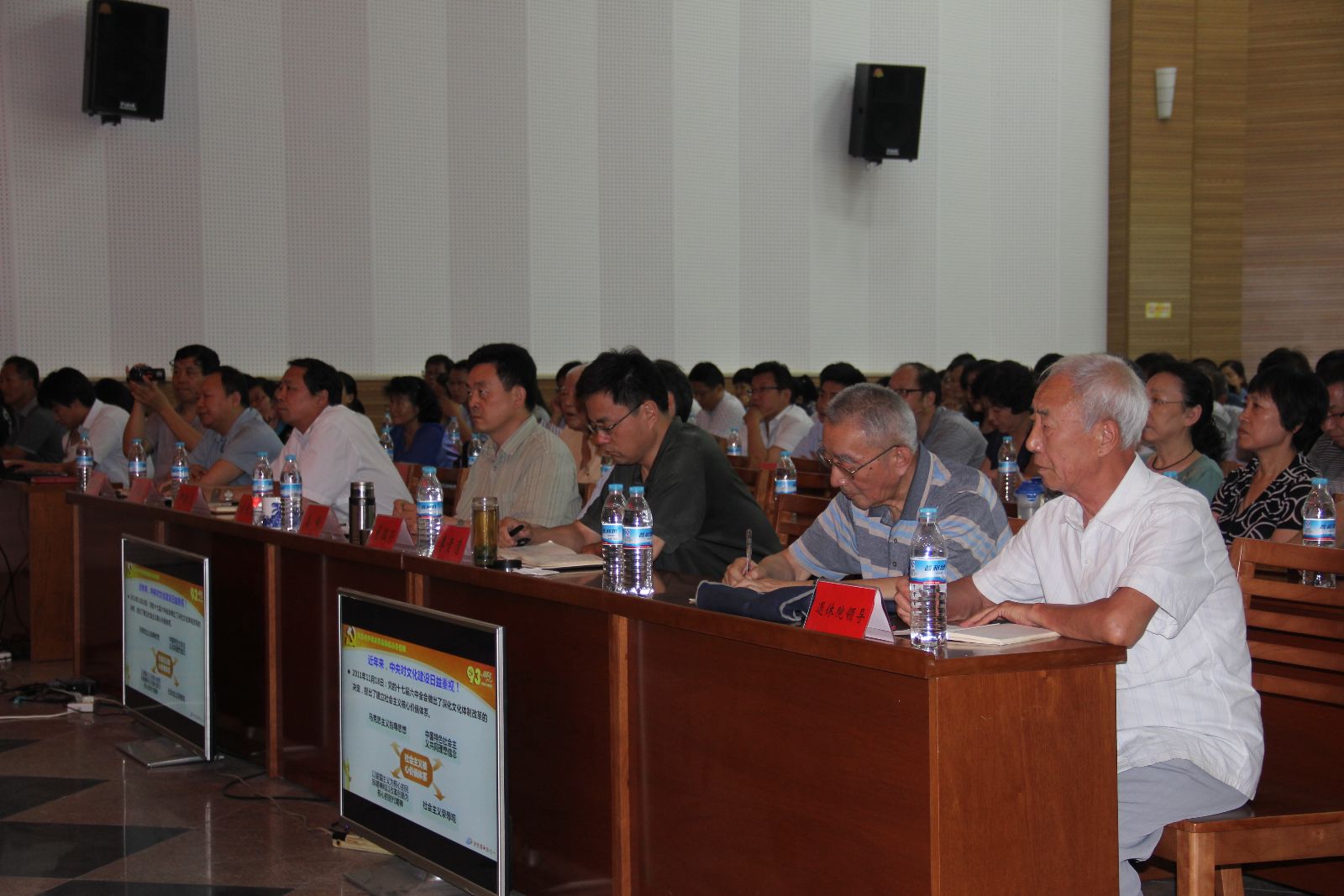 为了庆祝中国共产党成立93周年,6月30日下午, 我院举办了“讲党课•庆七一”活动。党委书记刘绍清同志作了题为“论当代中国应具备的核心价值观——学习习近平总书记《青年要自觉践行社会主义核心价值观》的心得体会”的报告。党委副书记、院长刘长余同志主持会议,院副科级以上干部、主任工程师、高级职称以上人员、在职党员、预备党员、入党积极分子、职工代表、离退休院领导、离退休支部成员共240人参加了会议。