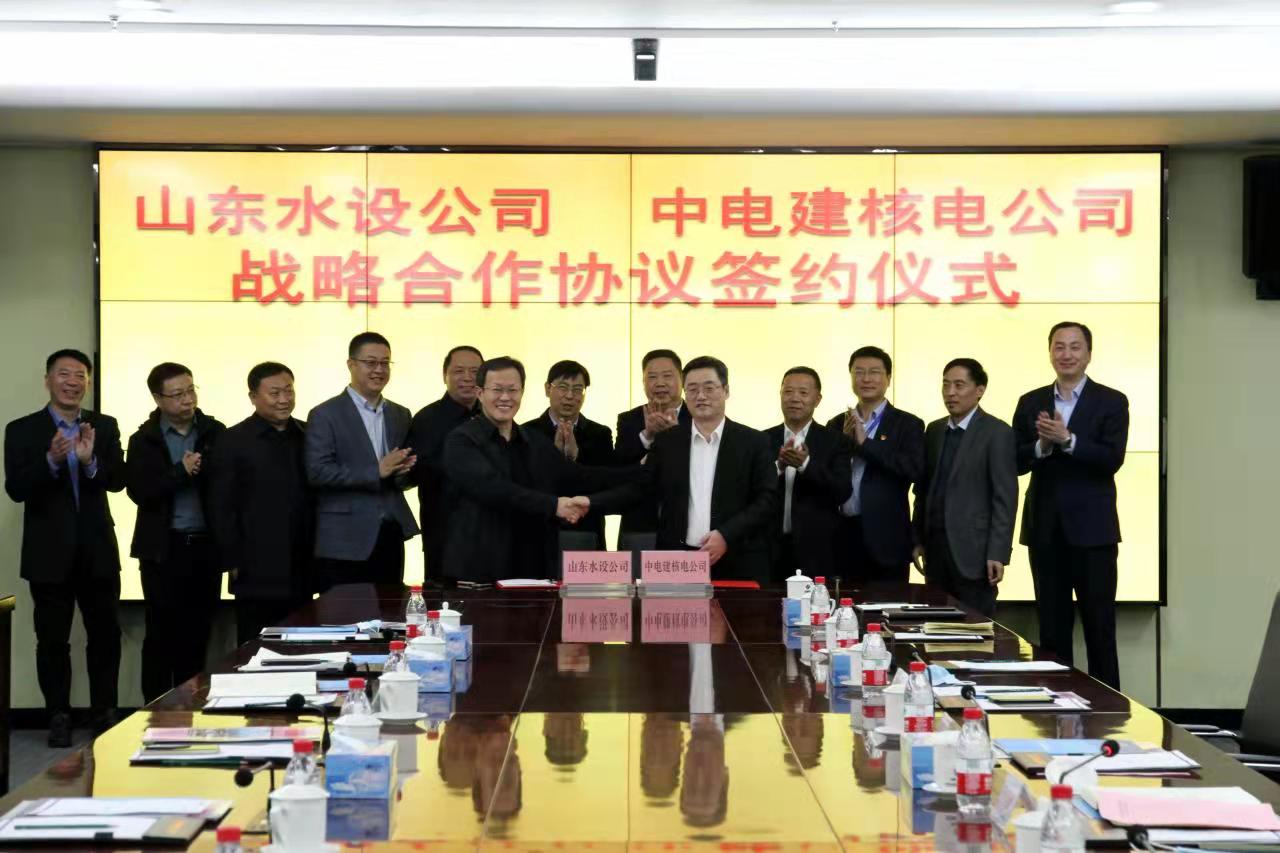 3月3日,2024幸运168飞行艇开奖历史记录(以下简称“山东水设”)与中国电建集团核电工程有限公司(以下简称“中电建核电公司”)在济南签署战略合作协议。山东水设党委书记、董事长刘绍清,中电建核电公司党委书记、董事长刘法书出席签约仪式。山东水设党委副书记王洪涛、中电建核电公司副总经理王学武代表双方签署协议。