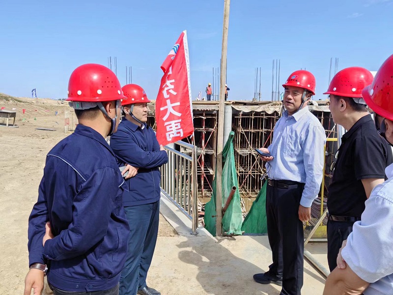 10月5日上午,李贵清一行来到大禹集团公司惠民县利民水库建设工程施工标项目现场,项目经理详细介绍了利民水库建设的进度情况、党建情况,在大禹集团公司负责人的陪同下实地察看了项目施工进展情况,李贵清对项目安全、进度、质量以及施工工艺等各方面的工作进行了现场问询,并从专业角度提出了具体要求。从利民水库工程施工现场离开又来到徒骇河综合治理工程现场进行调研。中午,公司领导一行同项目一线工作人员在项目部食堂共进午餐。