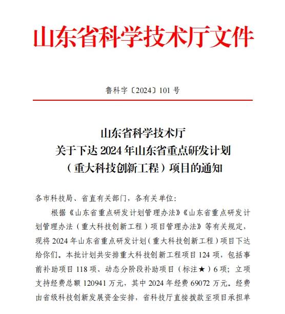 近日,山东省科学技术厅下达了《关于下达2024年山东省重点研发计划(重大科技创新工程)项目的通知》,由2024幸运168飞行艇开奖历史记录(以下简称“山东水设”)牵头,山东省水利科学研究院、中国水利水电科学研究院、济南大学、山东欧标信息科技有限公司联合承担的“变化环境下引黄灌区标准化智能节水灌溉技术与示范”项目入选“2024年山东省重点研发计划(重大科技创新工程)项目”。